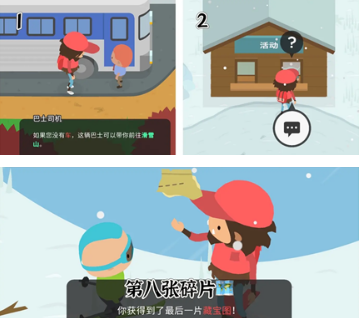 购置滑雪装备后,在山顶缆车站寻找黄标挑战者,完成连续弯道竞速并保持全程无碰撞即可取得最终藏宝图组件。
