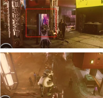 7、下行至商业区底层通道,近距离物资箱可通过精准站位直接开启,远端货箱需结合推进装置获取。