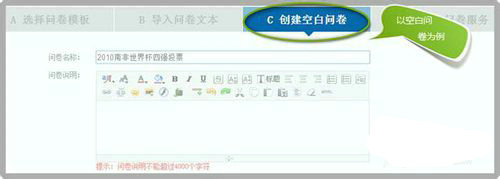 进入官网后点击"新建问卷"按钮,系统提供多种创建方式。建议初次使用者选择"空白创建"入口,在基础设置界面建议先填写投票主题和引导语,便于后续题目编排。