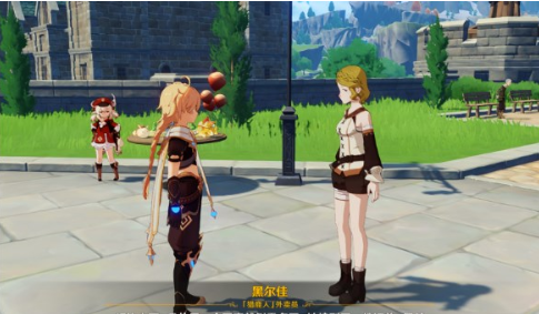 当游戏内时间切换至白昼时段,前往活动主场景的木质长桌区域。在此处可发现身着红衣的可莉与蒙德城外卖配送员形成特殊组合。与配送员进行两次对话交互,首次选择「关于金色飞影」的对话分支,将解锁蒙德城飞行冠军安柏的特殊故事线。