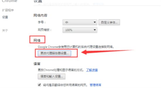 3、于网络配置区域找到"系统"分类,选择"打开代理设置"按钮跳转至系统级网络参数配置界面。
