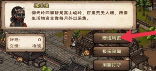 第二阶段需切换至幽州地图定位极乐徒NPC,触发物资交互环节。此阶段需重点注意好感度累积机制,不同品质物资将直接影响关系提升效率: