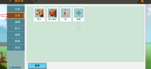 第一步:启动客户端后选择开始游戏选项,进入主操作界面后在屏幕右上方找到插件库入口,该功能模块内置多种生物模组编辑工具。