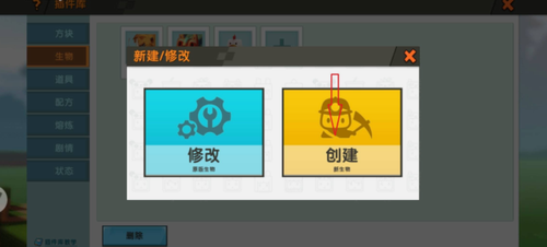 第二步:在生物分类目录中选择新建按钮,系统将弹出生物模板选择面板,此时需点击创建新生物功能开启建模流程。