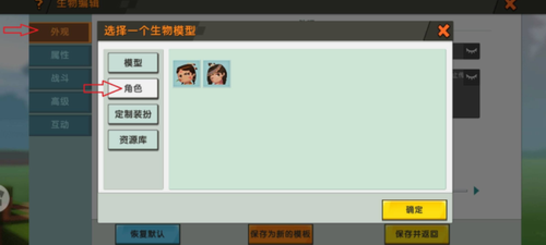第三步:选取添加新模板选项后进入核心编辑界面,此处需重点调整外观模型参数,通过下拉菜单切换至预设的人形基础模板作为创作起点。