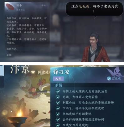 最终阶段需同时展示「星象图卷」与「青竹伞」两件特殊道具。前者可通过观星台夜间观测获取,后者需完成汴京雨天随机事件解锁。建议提前将道具放置在快捷栏,展示环节存在10秒限时操作,成功后会触发专属过场动画,完整观看可提升角色江湖阅历值15点。