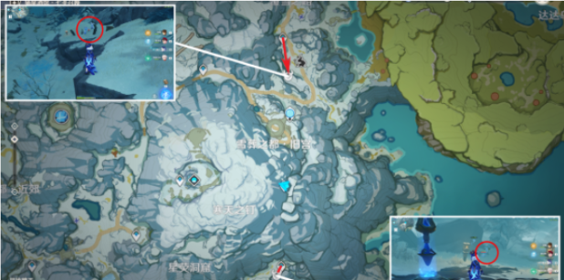 若孤云阁目标已被清除,可转战龙脊雪山区域。南北两侧传送点附近各分布2个丘丘萨满,建议优先击破冰雾花解除严寒环境。此处地形复杂,注意利用火元素角色清除积雪障碍。